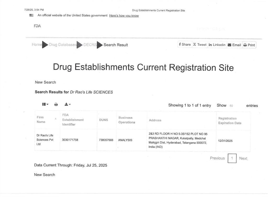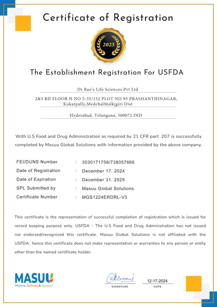 FDA CERTIFICATE OF REGISTRATION